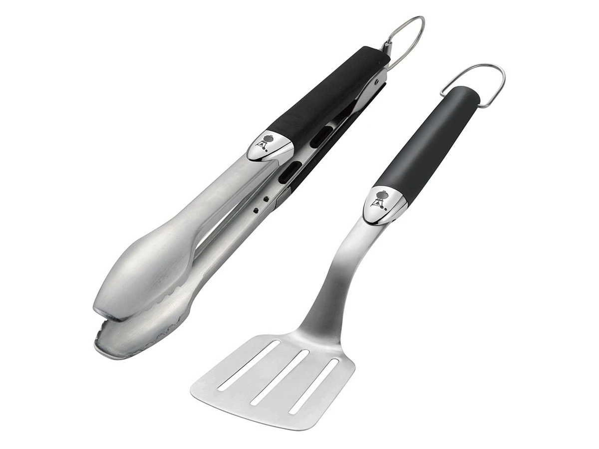 De Weber gereedschapsset 2-delig is gemaakt van roestvast staal met kunststofgrepen, voor het optimaal omdraaien van gerechten.