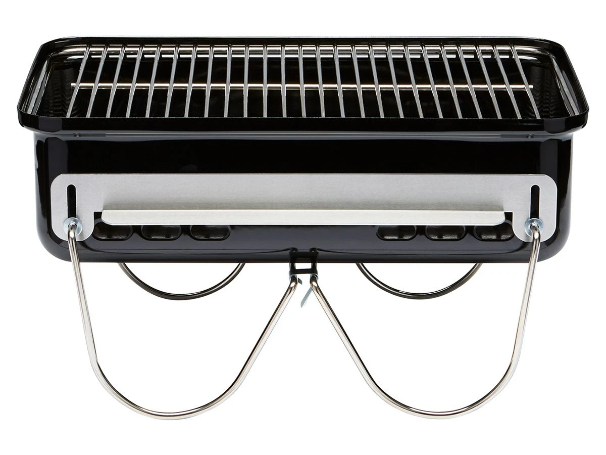 Wil je onderweg of op de camping makkelijk kunnen barbecueën zonder al te veel ruimte kwijt te zijn? Kies dan voor de Go-Anywhere houtskool barbecue van Weber. De Go-Anywhere heeft een verchroomd bovenrooster en een aluminium onder rooster waarop de houtskool en briketten kunnen worden geplaatst. Het grilloppervlak is ruim, er kunnen gemakkelijk meerdere stukken vlees, vis en groente op geplaatst worden. Met de aluminium ventilatieroosters kan de temperatuur eenvoudig geregeld worden.