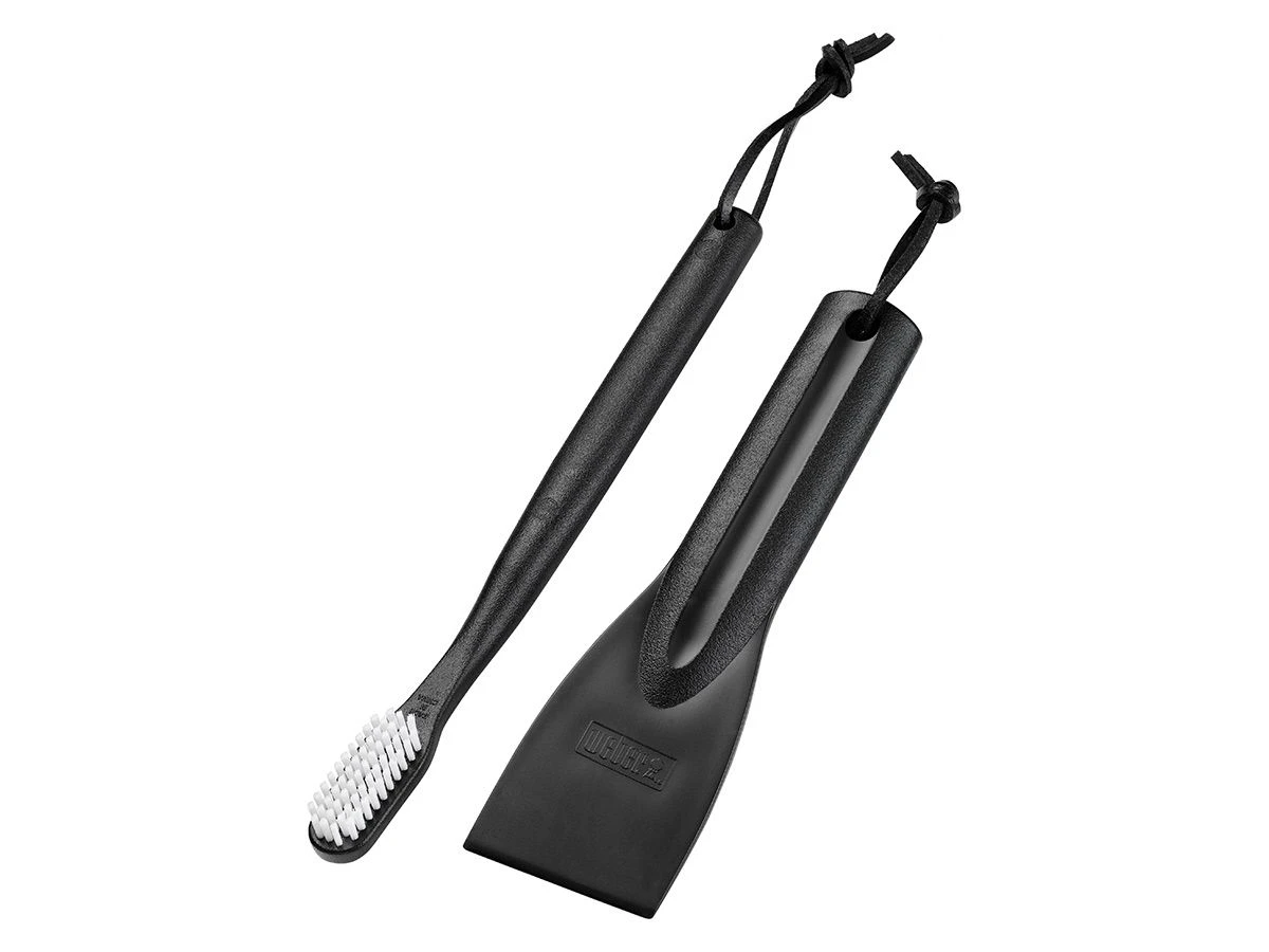 De borstel heeft een afmeting van 25,4 x 19 x 3 cm en de spatel heeft een afmeting van 21,6 x 5,8 x 1,9 cm.