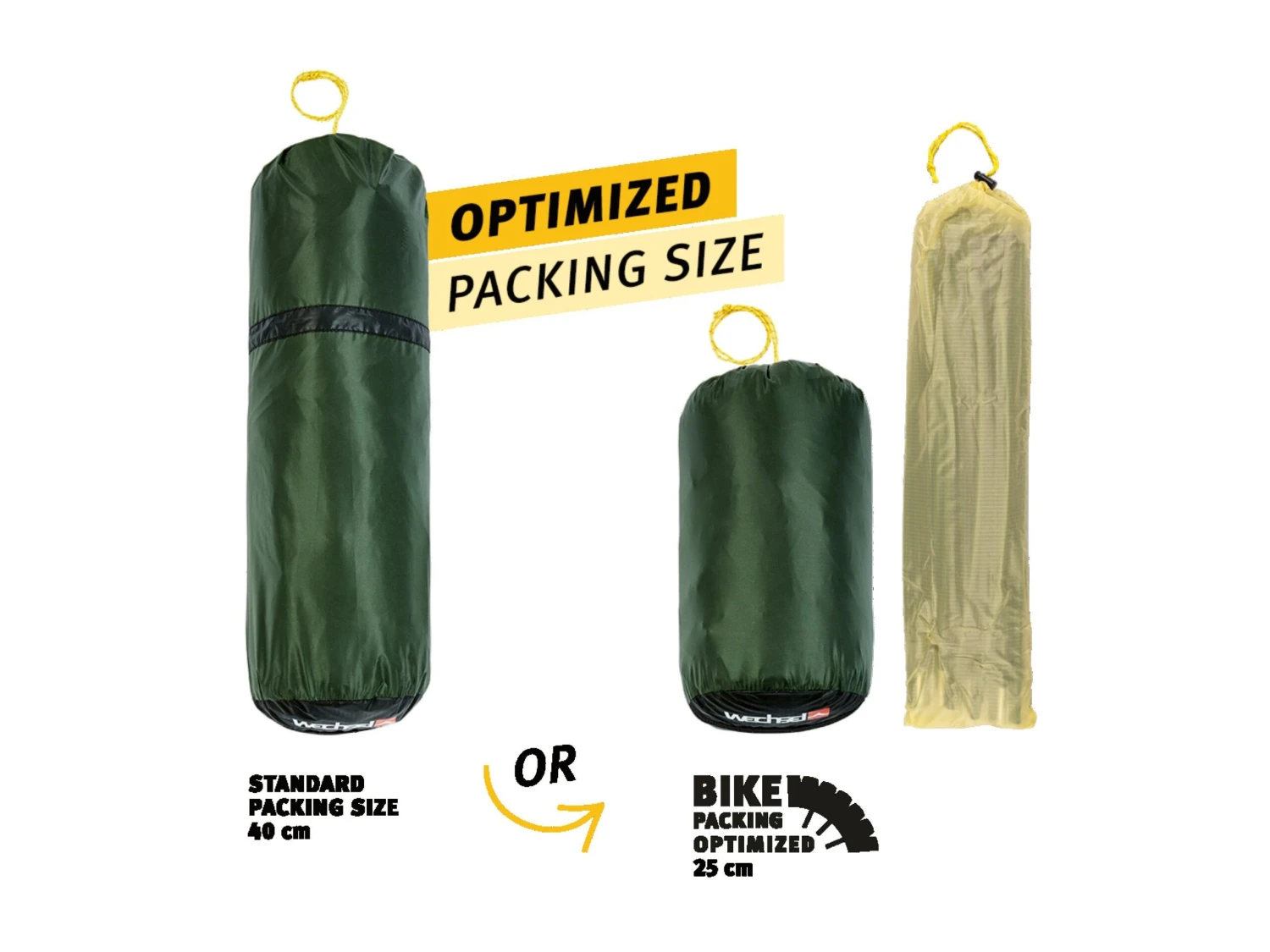 De Exogen 1 is een vrijstaande geodetische tent voor één persoon – inclusief apsis. Twee aluminium knooppunten op de palen zorgen voor een hoge windstabiliteit. Eerst wordt de binnentent van de Exogen 1 opgezet. De extra boog met stokken vormt de voortent zodra de buitentent eroverheen gespannen is. Voor zeer lichte weersbescherming kan de buitentent afzonderlijk met behulp van het grondzeil worden opgezet. De binnentent is voorzien van horren in de deuren en aan het voeteneinde en hoofdeinde. Drie extra zakken in de binnentent zorgen ervoor dat alles netjes blijft en bieden ruimte voor kleine spullen die anders rondslingeren.